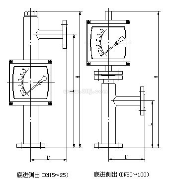 五、防爆型金屬管浮子流量計外形及安裝尺寸